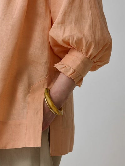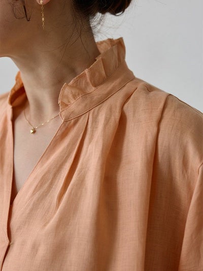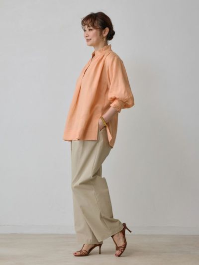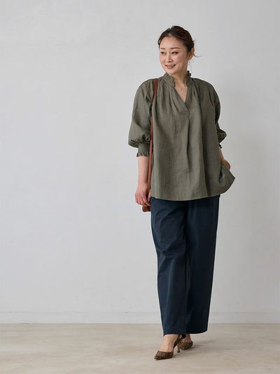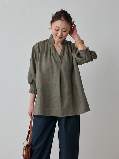 ふわりと軽く優しげな、リネン素材のスキッパーブラウス。