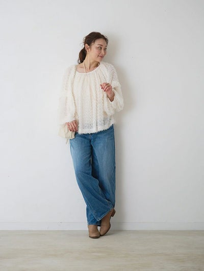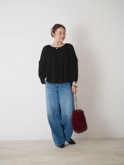 繊細な輝きとエアリーなフォルムで魅了する、ラメ入りカットジャガードプルオーバー。