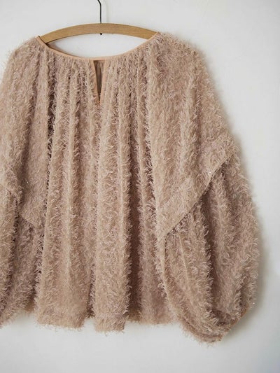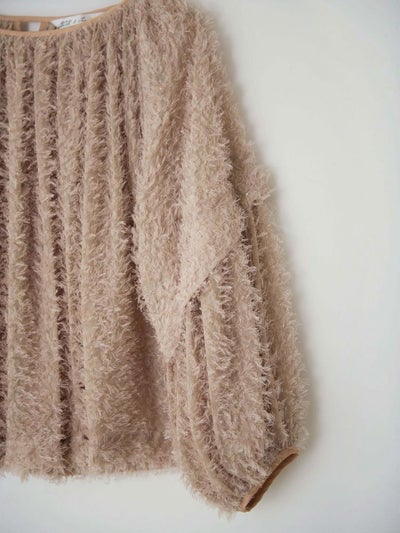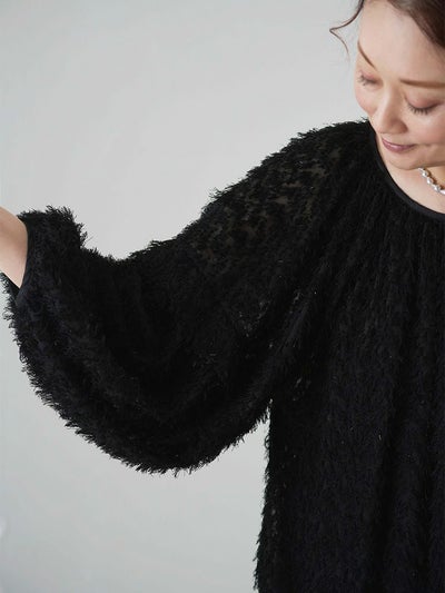 毛足の長い軽やかなジャガード生地に、キラキラと輝くラメを織り交ぜた華やかなテクスチャーが魅力です。