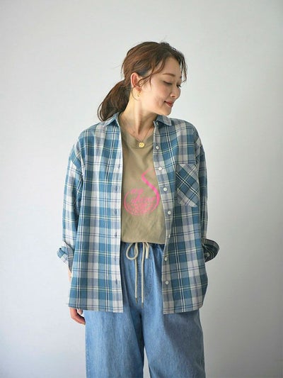 軽くソフトなコットン素材に、リネンのシャリ感がマッチした爽やかなチェックシャツ。