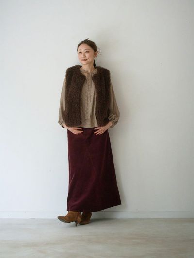 秋らしい温かみある色合いと、落ち感のあるしなやかな素材がつくり出す優雅なシルエットが、優しげな印象を与えてくれます。