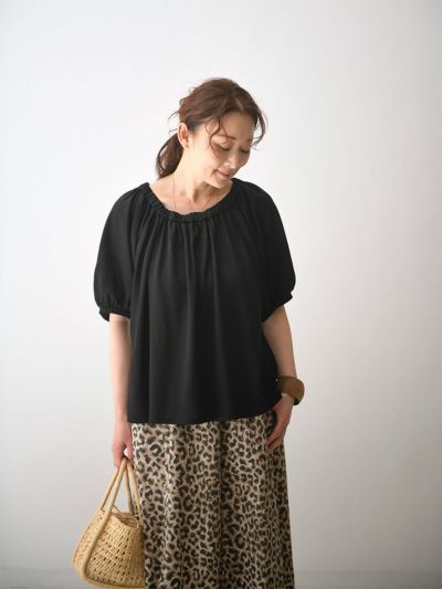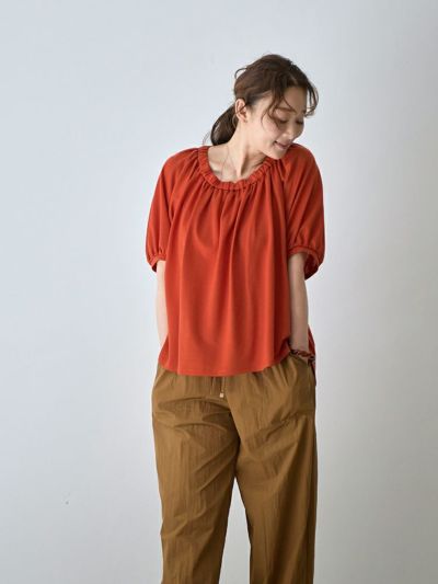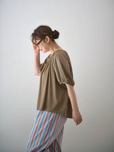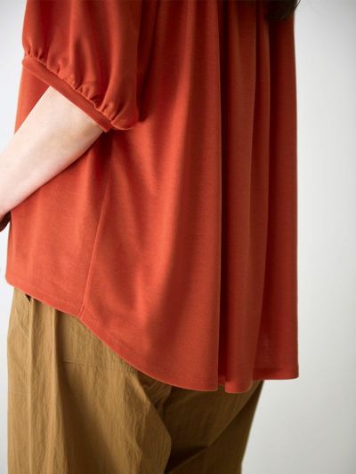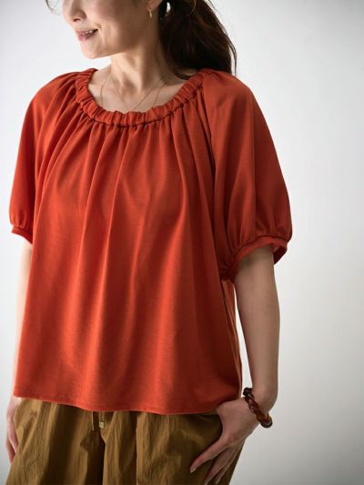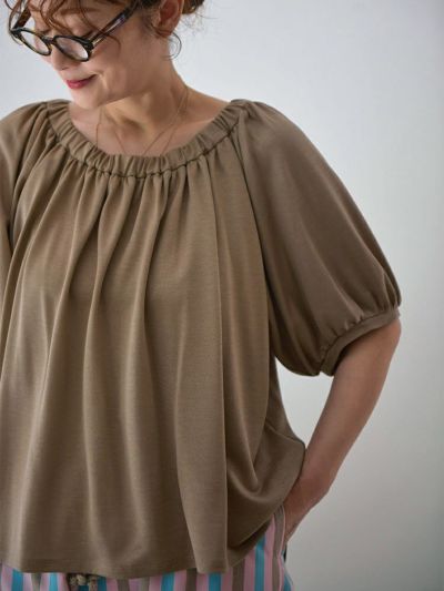 たっぷりのギャザーが生み出す美しいドレープが、奥行ある上品な雰囲気のカットソー。