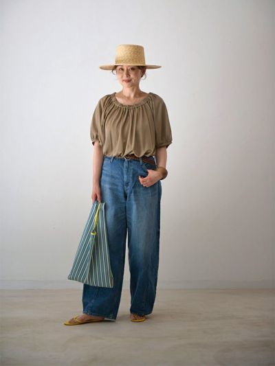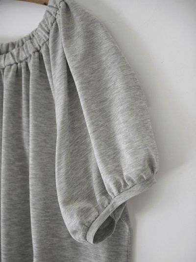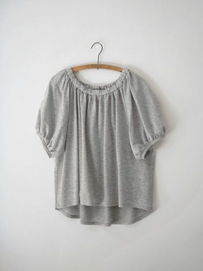 ネックラインにはしっかりとしたゴムを通して、オフショルダーとしてもアレンジ可能なデザインに。