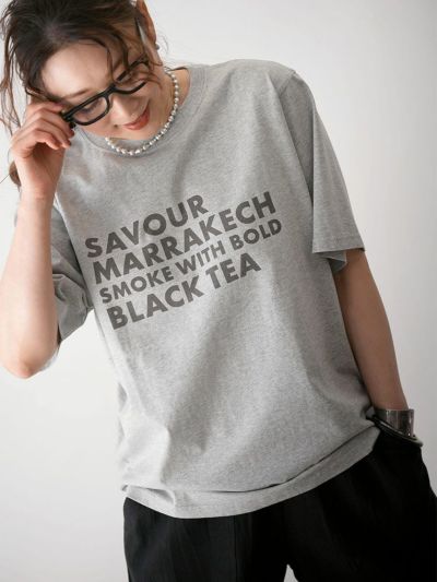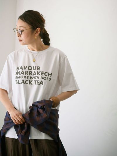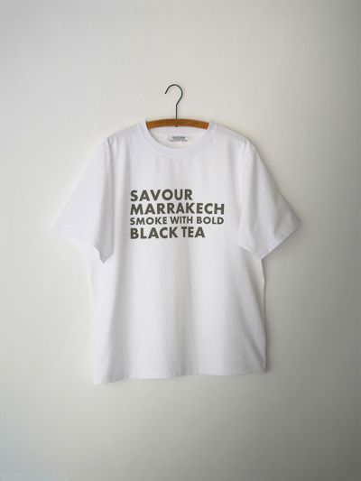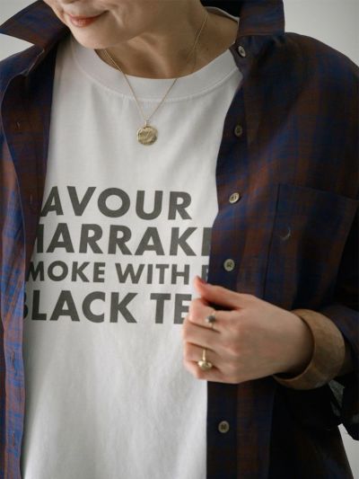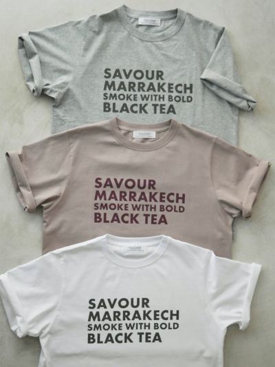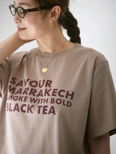 胸には異国情緒あふれる香りを表現した「マラケシュの煙をまとった奥深い紅茶」の文字を。