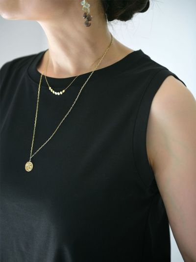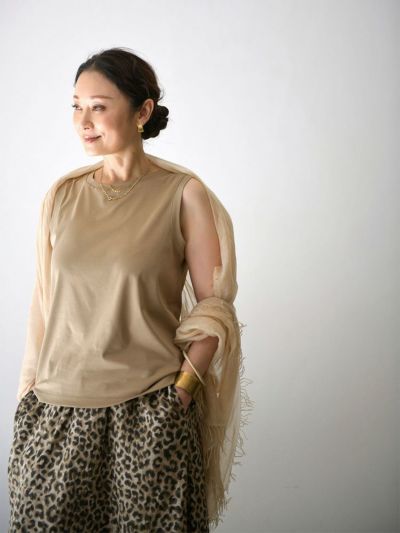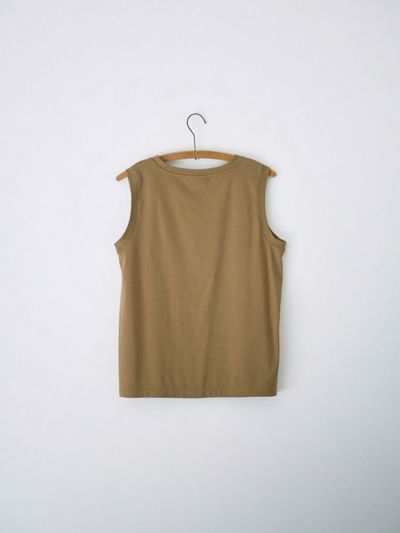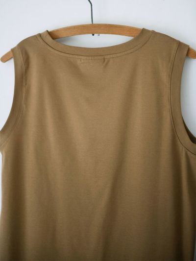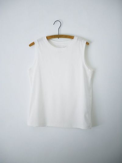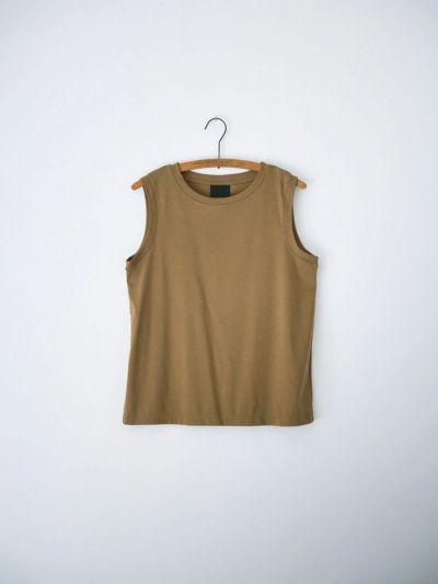 シャープな表面感が都会的な、シンプルなスリーブレスのカットソー。