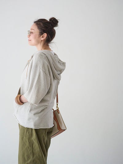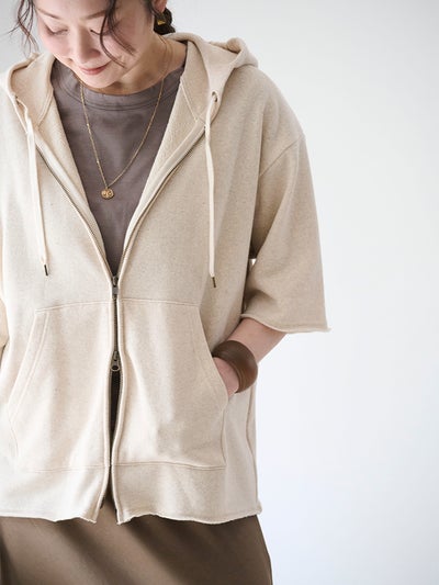心地よい肌触りと快適なサイジングで、気負いなく羽織れるミニ裏毛のハーフスリーブフーディー。