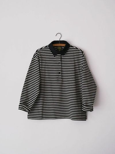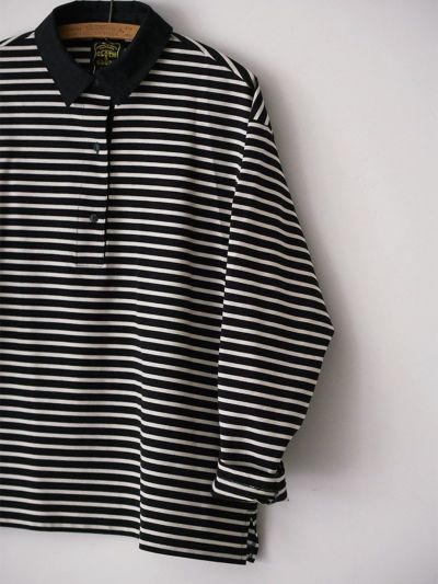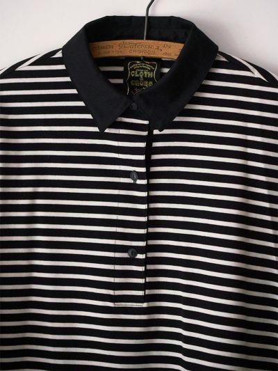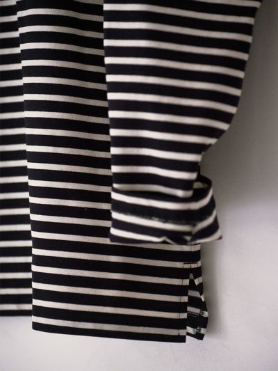 襟元には上品な光沢のあるツイル素材を使用し、しなやかなカットソー素材と組み合わせました。