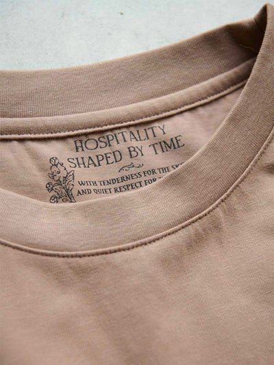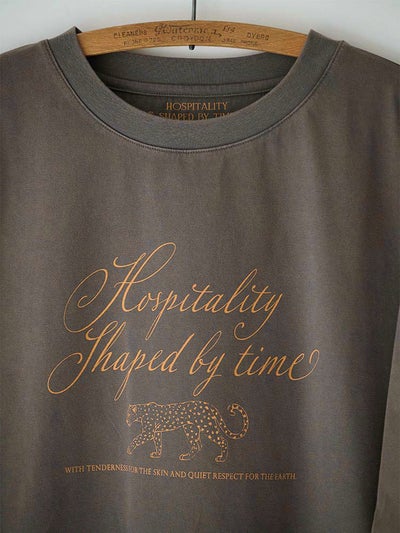 胸元には「Hospitality shaped by time(時を重ねたおもてなしのかたち)」の文字を。
