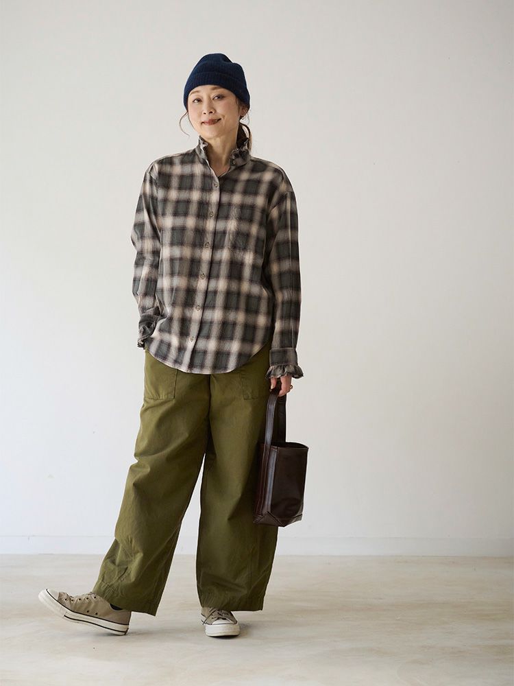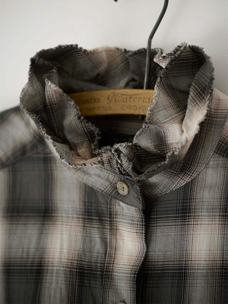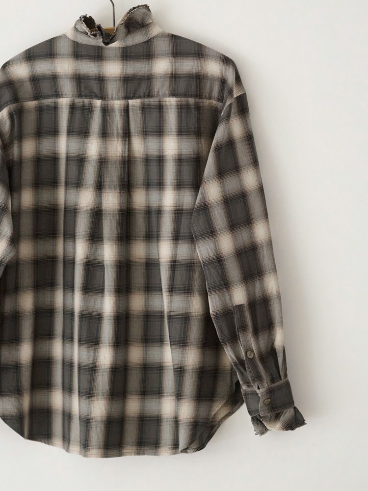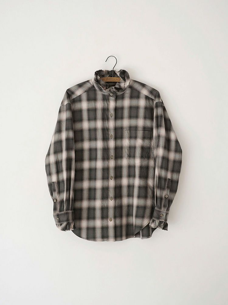 オンブレチェックダブルフリルスタンドシャツ