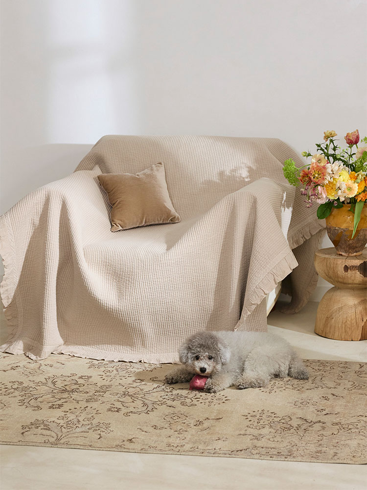 ソファやベッドをよりゆったりと包み込めるよう 前作よりも横幅を広げた大判サイズへとアップデートして、よりマルチなサイズ感に。 |