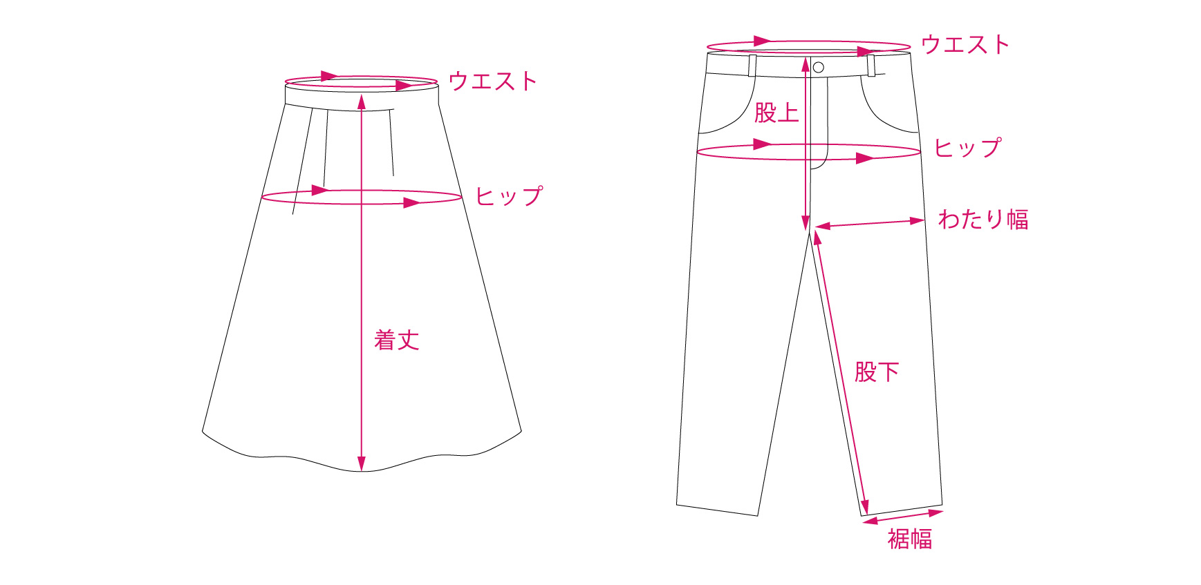 前ウエスト上端から裾までを測っています。
