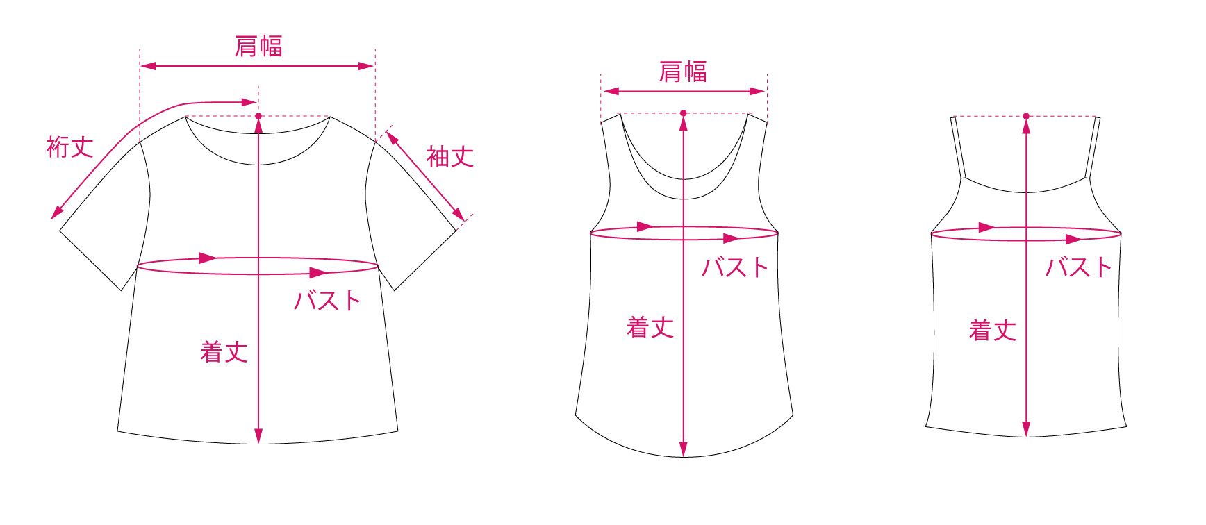 ・ニット等の伸縮素材や、タック、ギャザー、ゴム仕様の商品は、伸ばさないで自然に平置きした状態で測定しています。