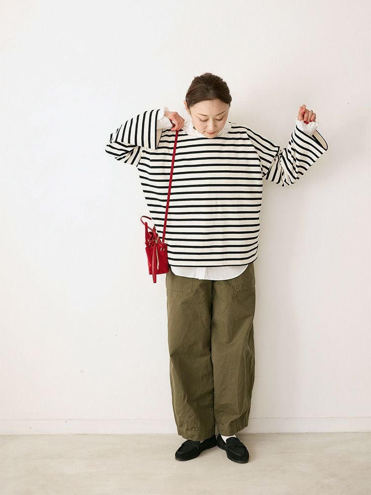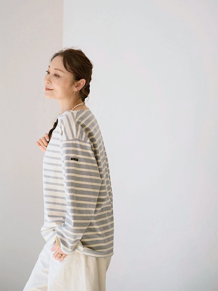ミックスボーダーボートネックカットソー