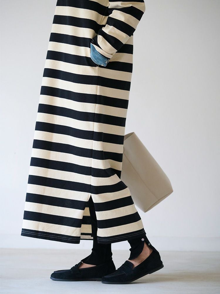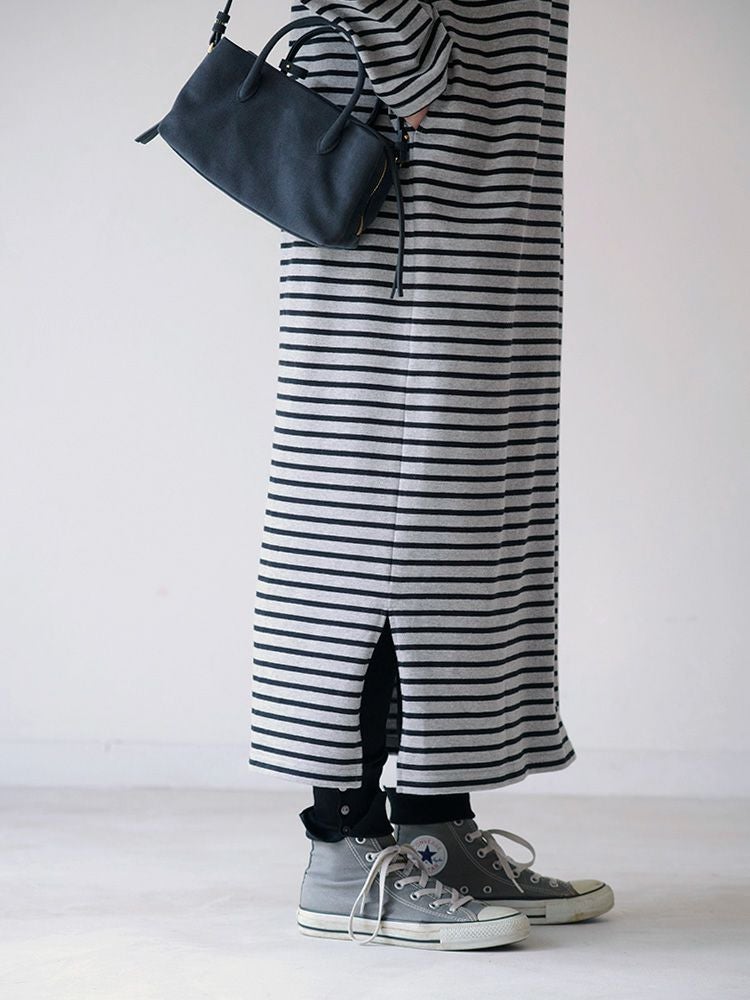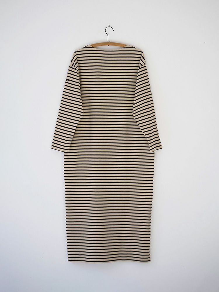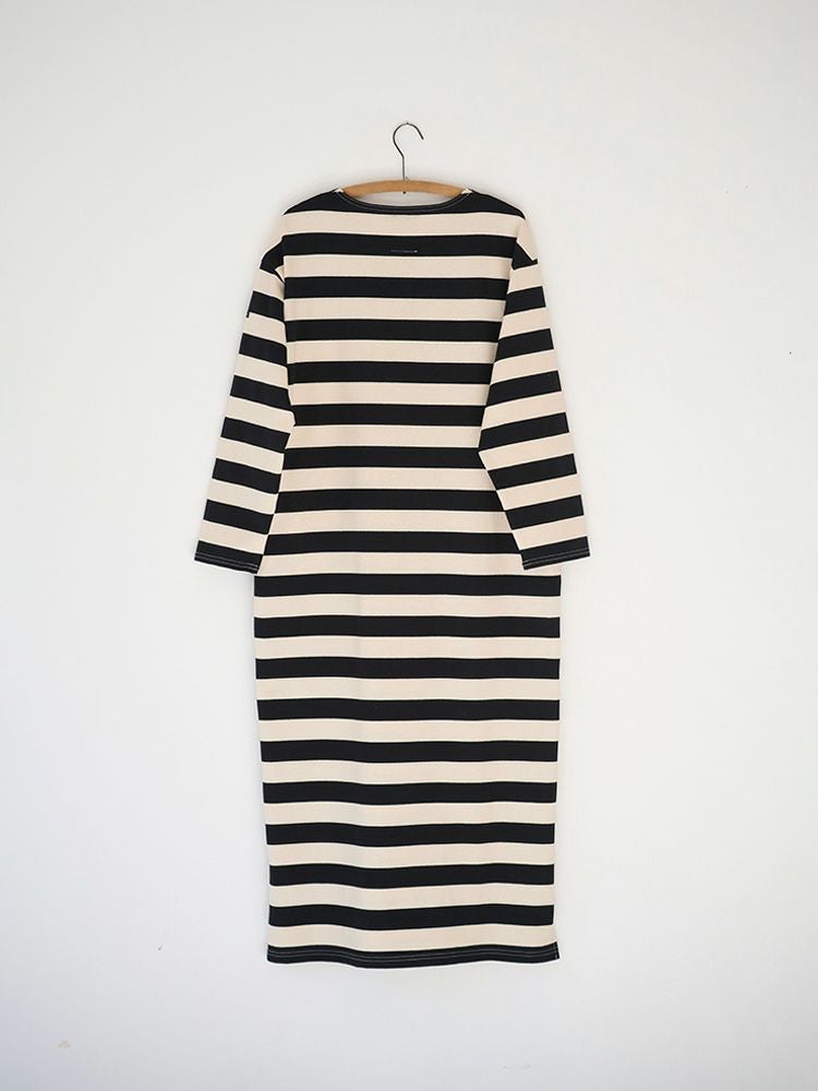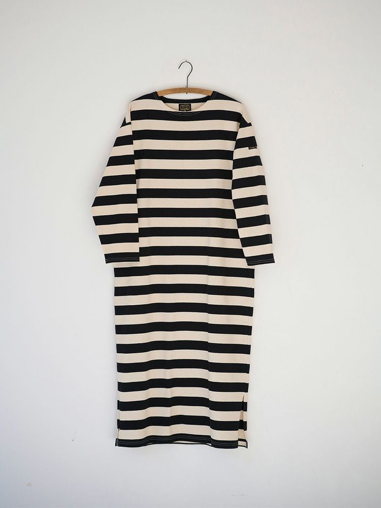 ボーダーボートネックロングワンピース(Wide border)