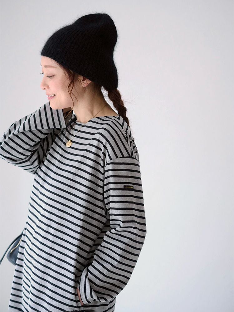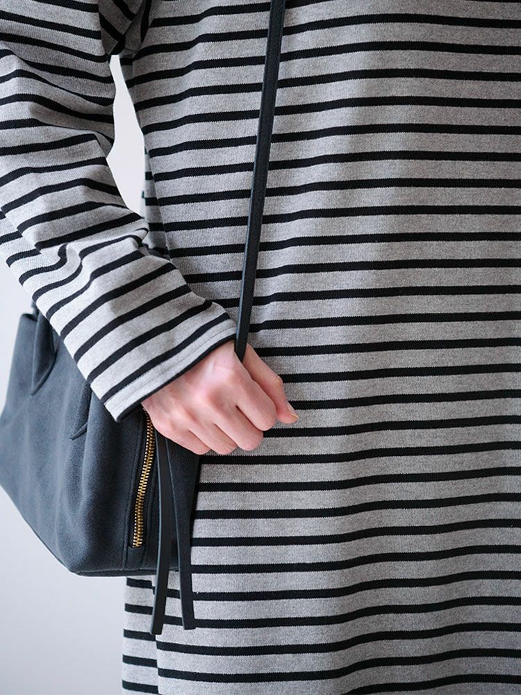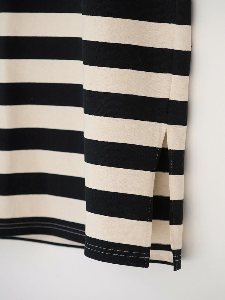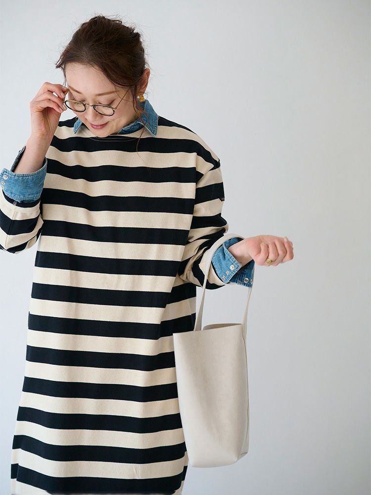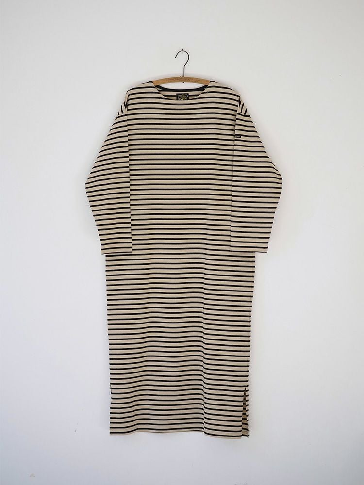 ボーダーボートネックロングワンピース(Wide border)