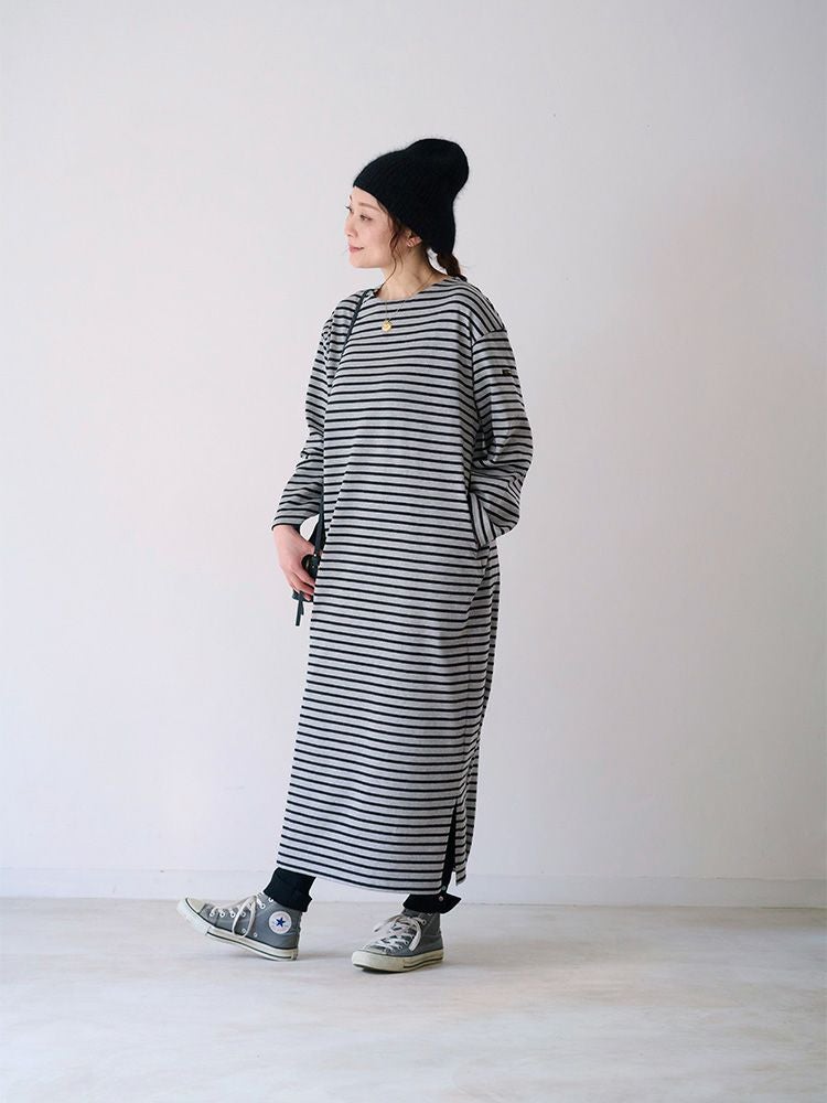 ボーダーボートネックロングワンピース(Pin border)