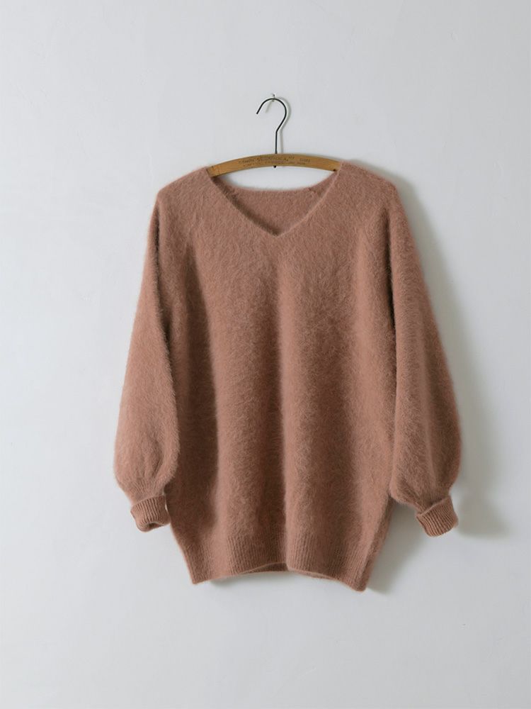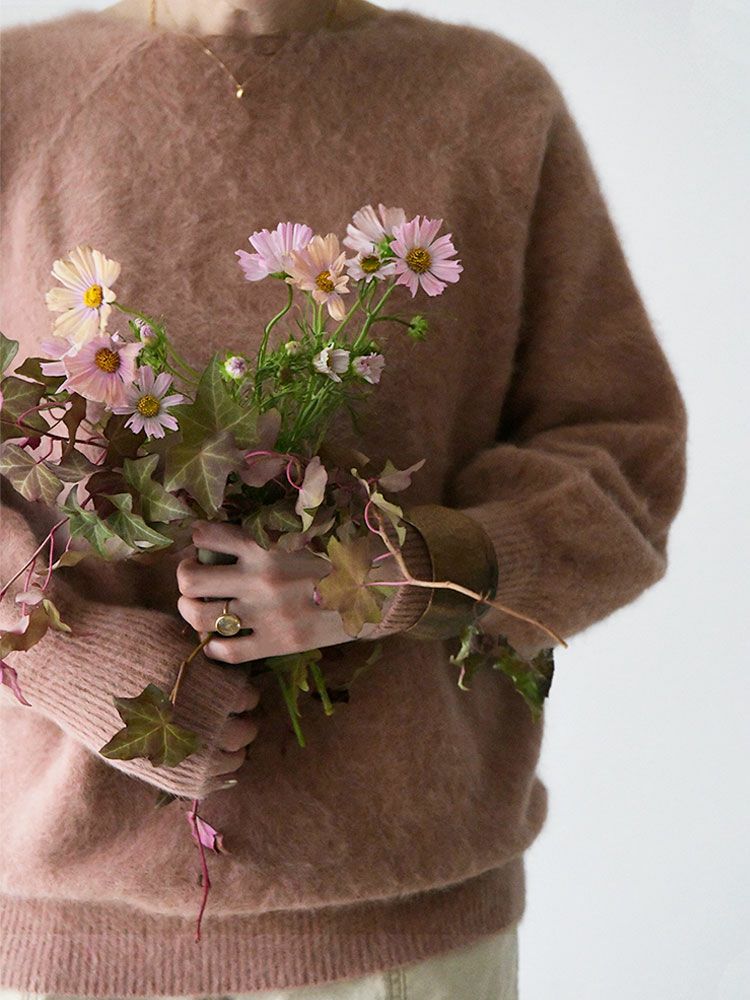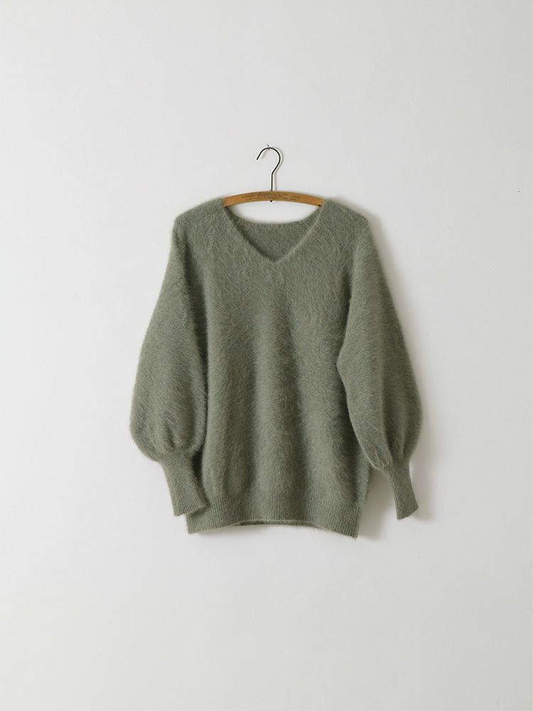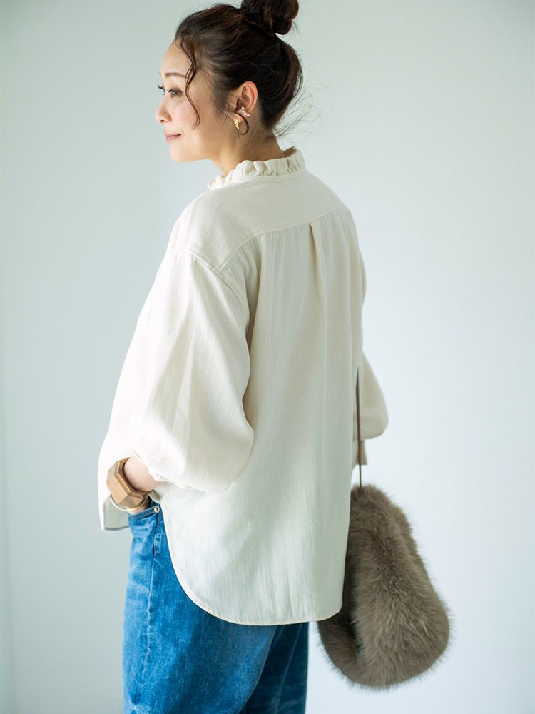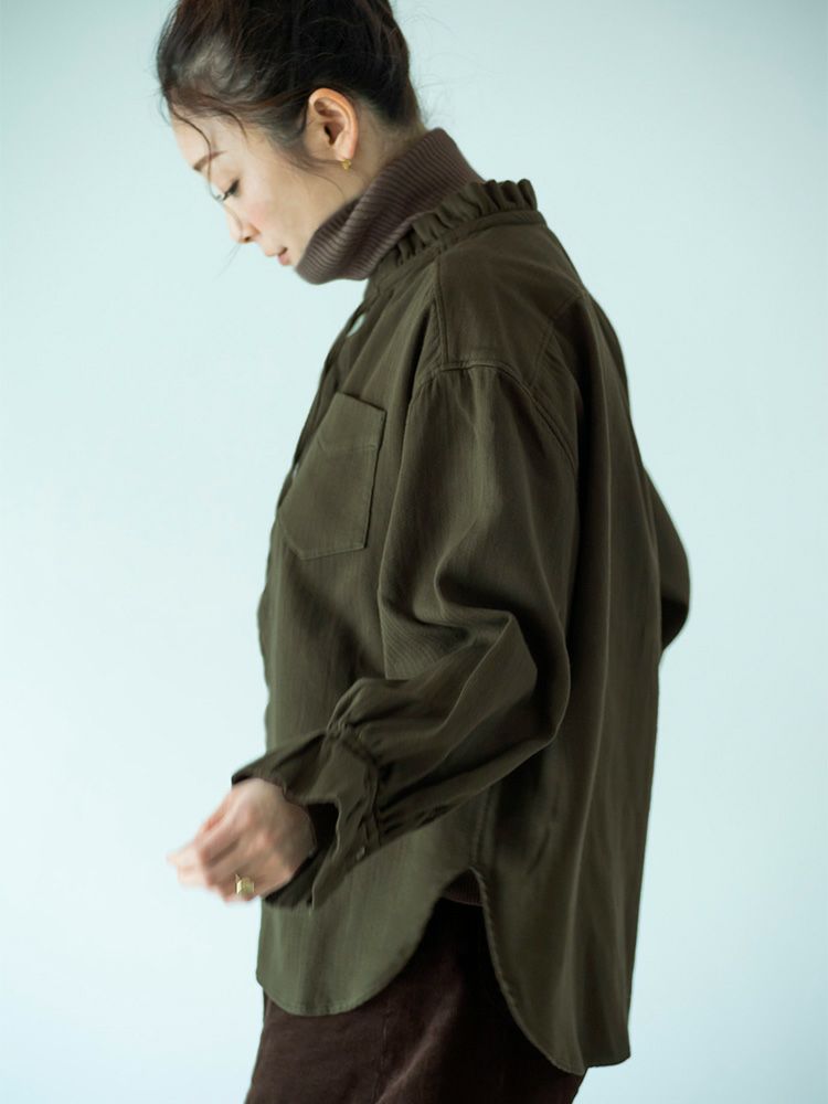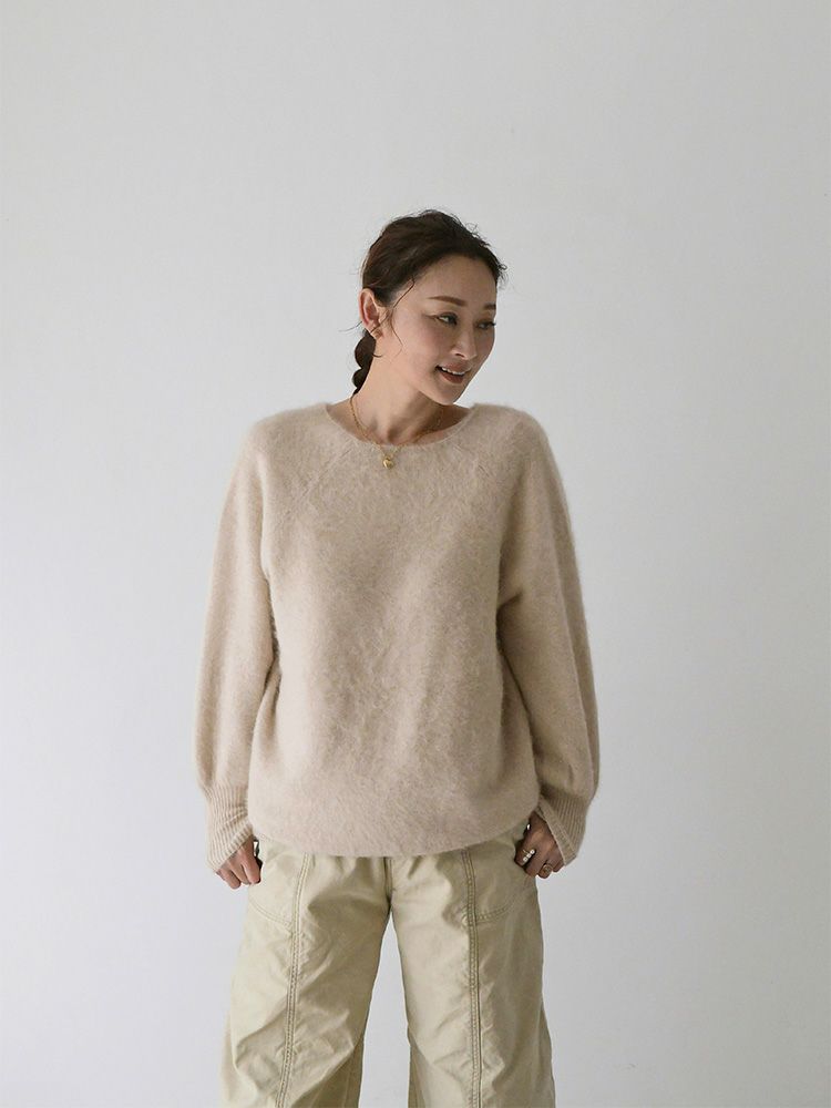 レーヨンシルクリブクルーネックロングスリーブT-sh