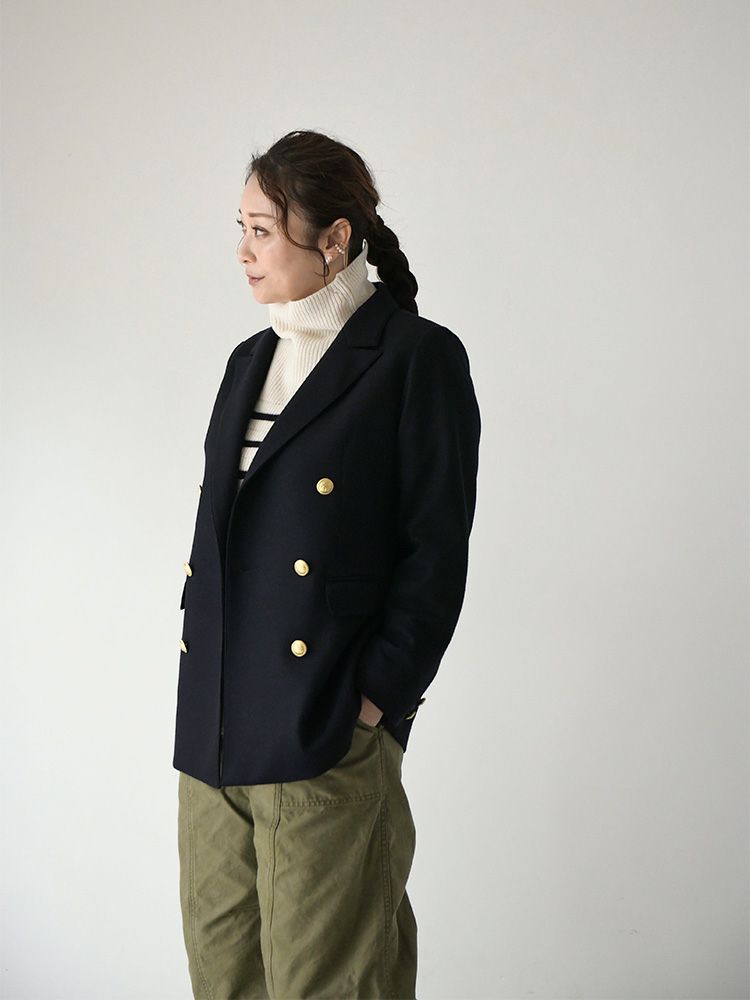 オリジナル金ボタンWブレストウールジャージージャケット